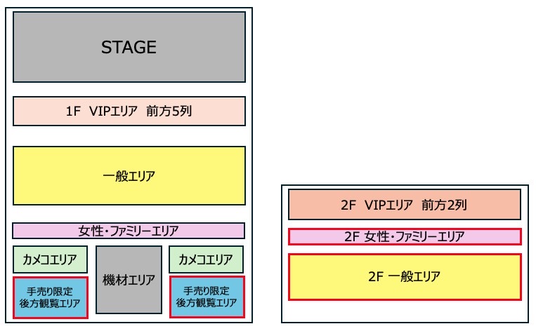 なお、カメコ席エリア前は女性ファミリーエリアとなります。